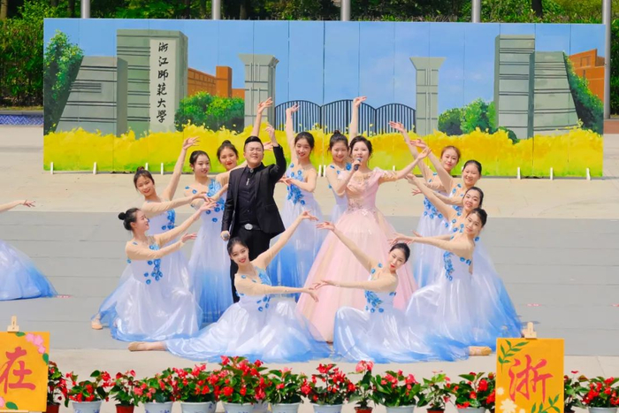 幼儿师范学院开展“手语礼赞”活动,合唱《浙江师范大学校歌》,以歌传情,以手表白。