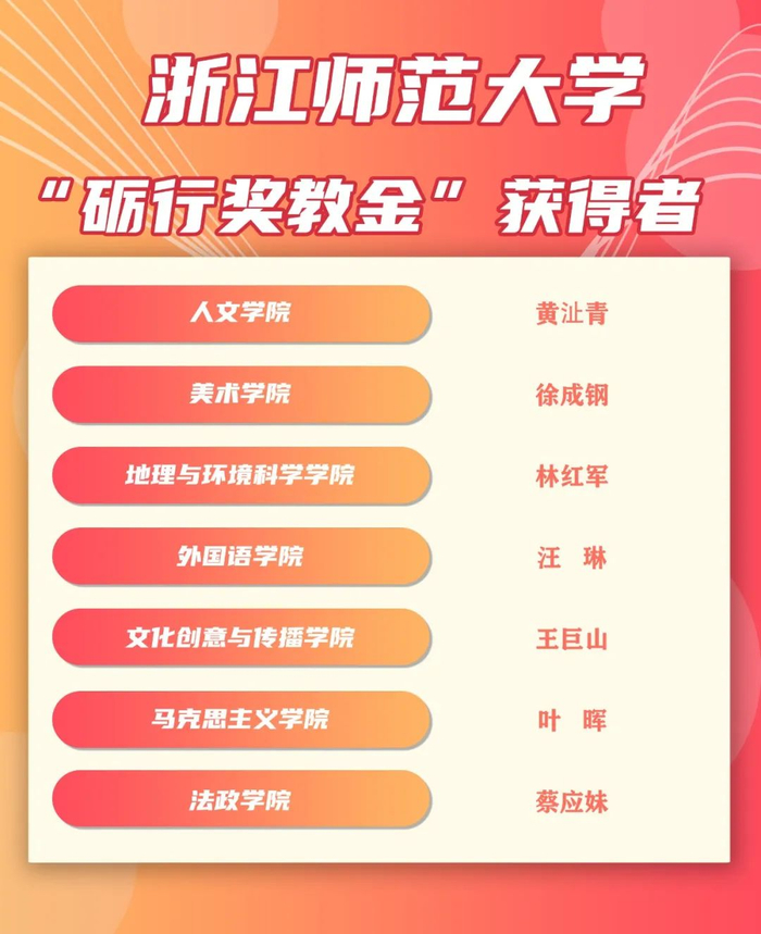 陈加元为“砺行奖教金”获得者颁奖,获奖者名单如下: