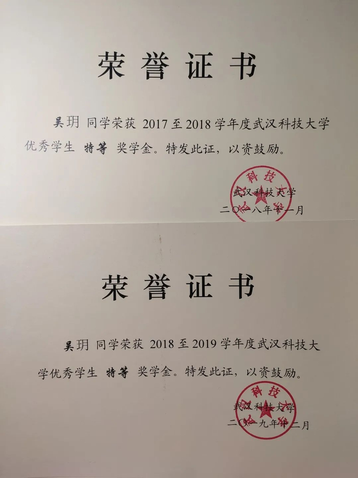 武汉科技大学特等奖学金证书