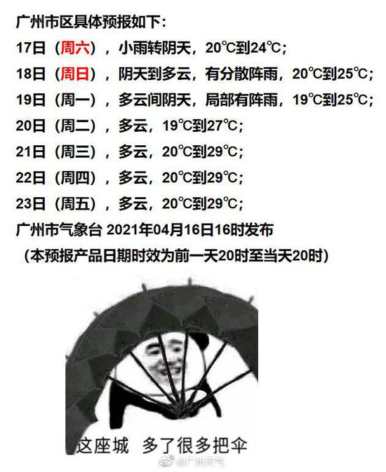 广州方面,今天起雨势开始变小,大部分时段以阴天为主,有轻微降温,小伙伴们可以根据自己的体质穿衣。市气象台预计,16日晚至17日广州小雨转阴天;18-19日阴天间多云,有分散阵雨;20-22日,广州以多云天气为主,气温回升。
