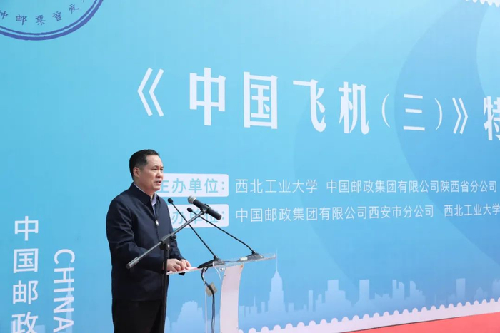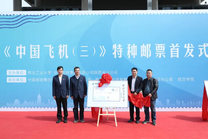 4月17日,为庆祝中国航空工业创建70周年,展示我国航空工业最新发展成就,由西北工业大学和中国邮政集团有限公司陕西分公司联合策划的《中国飞机(三)》特种邮票首发式在长安校区举行,西北工业大学党委常委、副校长何国强,党委常委、宣传部部长杨晓,中国邮政集团有限公司陕西省分公司副总经理张琳,航空工业第一飞机设计研究院工会主席李西明,成都飞机设计研究所型号副总设计师任云松,中国直升机设计研究所型号副总设计师李林华,中航通用飞机有限责任公司AG600副总工程师杨荣,中国邮政集团有限公司西安市分公司副总经理刘峰等与现场100多名师生共同见证了这一时刻。