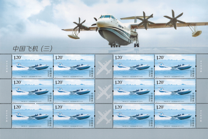 此次发行的《中国飞机(三)》特种邮票共有4枚邮票,分别印有歼-20、运-20、直-20、 AG600等四型飞机的图案,邮票根据四型飞机的不同特点,采用针对性的构图突出了四型飞机的显著特征,并通过写实风格加以呈现,营造出强烈的临场感和视觉冲击力,体现了“大国重器”的科技感和力量感。