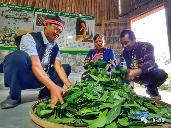 普洱市江城哈尼族彝族自治县种茶历史久远,江城人把春茶、夏茶大部分做成普洱茶或者绿茶,把秋后新鲜的老茶叶子制作成帕卡茶,并逐渐发展出了独特的加工工艺和用陶罐煨茶喝茶的方法。