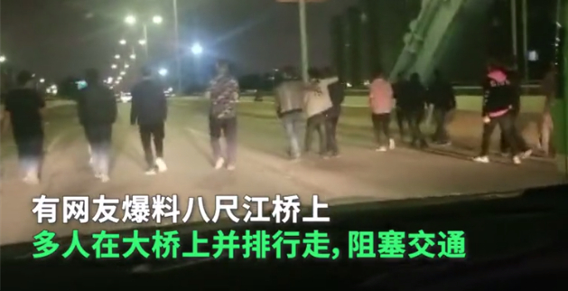 ·广西南宁十余人大桥上并排走堵路,后方车辆排长队不断按喇叭,警方通报:事发原因为工程款纠纷。