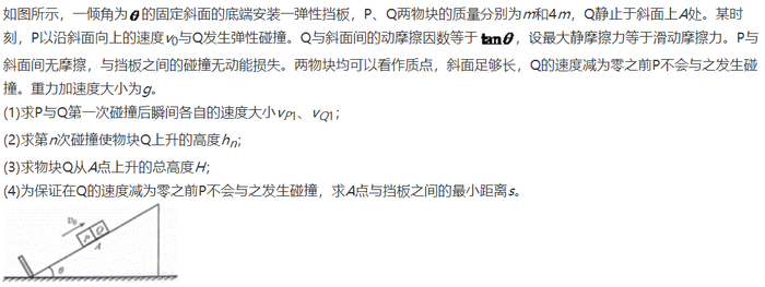 该同学与斜面间无摩擦,与蹦床之间的碰撞无动能损失。该同学与弹力方均可以看作质点,假设斜面足够长,Q的速度减为零之前P不会与之发生碰撞。重力加速度大小为g。