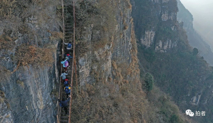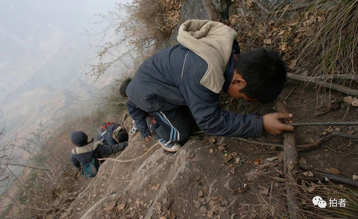2007年,新京报记者曾拍摄他们接送20多个学生走悬崖、爬木梯上下山的经过。