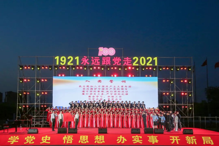 刚才,我们一起欣赏了朗诵节目《少年中国说》。一百多年前,梁启超先生写下的这篇热切的文字,激励了千千万万有志青年为革命事业前赴后继、奋勇献身。如今重温这些词句,仍然让人心潮澎湃、热血沸腾。刚才,现场一万多名青年团员共同重温了入团誓词,唱响了《共产主义青年团团歌》,誓言铮铮、歌声激昂。此时此刻,我想围绕三个词,来表达我的感受和期望。