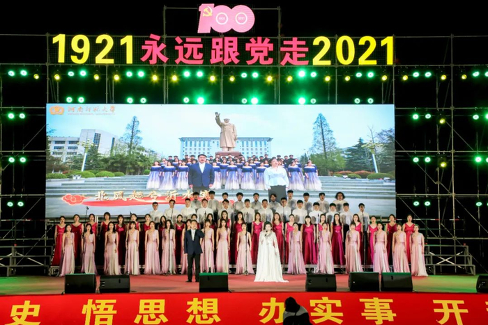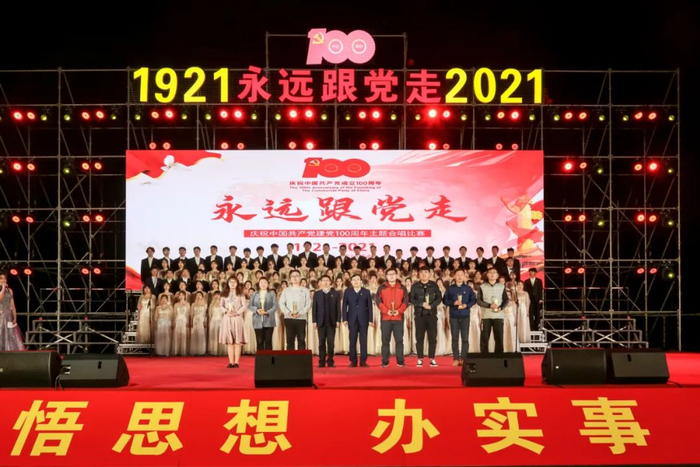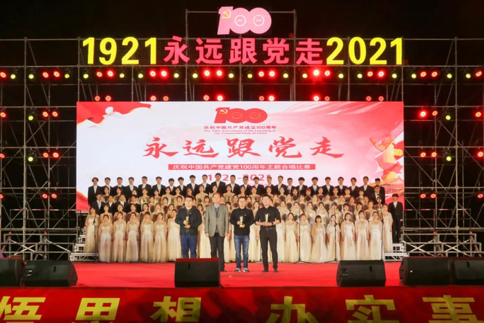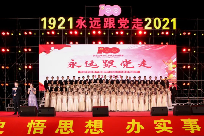 四月的春风情深意暖,“五月的花海”溢彩流香,青春的歌声悠扬嘹亮。今天,我们在这里举办“永远跟党走”主题合唱比赛,一起唱响红色经典,弘扬爱党、爱国精神,展现师大青年朝气蓬勃的精神风貌和昂扬向上的奋斗姿态。在此,我代表学校,向精心筹备、积极参与的老师们、同学们表示诚挚的问候和衷心的感谢!