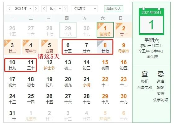 ⊙五一加班5天抵平时上班11天