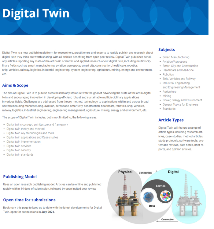 《Digital Twin》国际期刊定位为