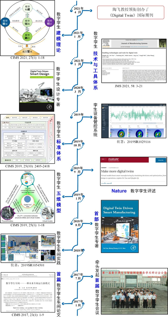 2016年,陶飞教授带领的北航数字孪生研究组在国际上首次提出了数字孪生车间(Digital Twin Shop-floor)的概念,并发表了首篇学术文章,引起了相关领域学者共鸣和关注,目前已被国内外100多所高校引用和跟踪研究,并被列入国家自然基金委、科技部国家重点研发计划、工信部国家工业互联网创新发展工程、国防领域等国家科技计划和指南。