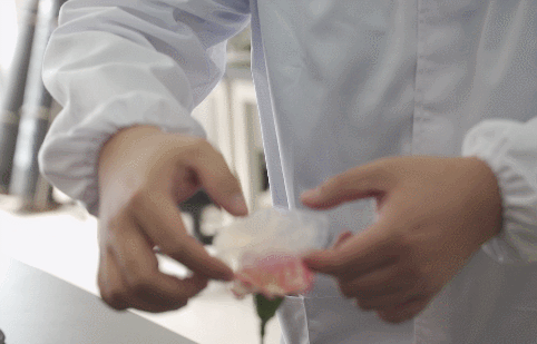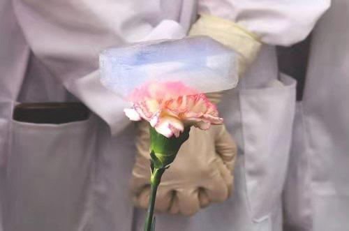 特殊的孔隙结构为气凝胶带来了独特的性能,它的密度极低,甚至比同体积的空气更轻,是世界上最轻的固体。来自中国航天科工三院306所的实验人员通过一个小实验展示了气凝胶“轻”的特性。把一块气凝胶放置在一个新鲜的花蕾上,因为气凝胶本身是非常轻的,因此不会对花蕾造成任何的影响。这里使用的是超低密度的气凝胶,自身的密度只有15mg/cm3,同等体积下,重量只有钢的1/500,铝的1/180,水的1/60。从而给火星车减负,让它“跑”的更快,“跑”的更远。