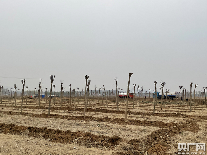 丰润镇西各庄村庄稼地里已栽种上树苗(总台央广记者 管昕 摄)