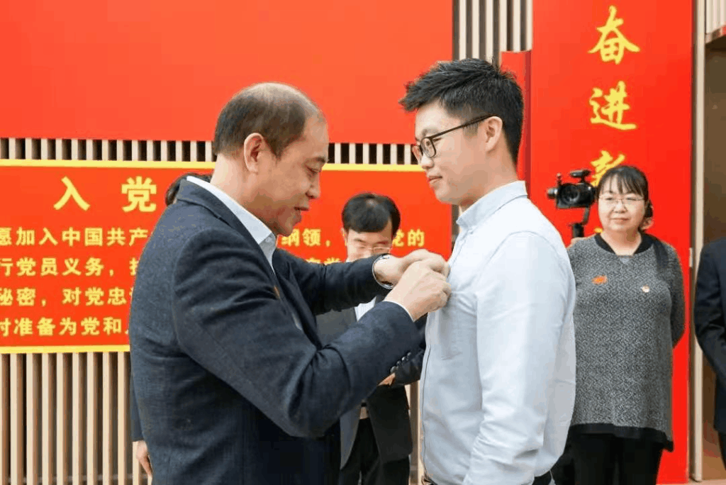 仪式现场,面对庄严的党旗,新党员郑重宣誓。铮铮誓言,响亮有力,字字千钧,宣告着每位党员即将担负起一生的光荣使命,也鼓舞着在场所有青年学子。新老党员进一步明确了胸前闪耀的党员徽章不仅仅是光荣的象征,更是一份无畏担当,一颗赤诚之心。