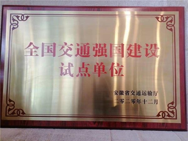 近日,经国家交通运输部批准,安徽涡阳县成功入选全国交通强国建设试点单位,并由省交通运输厅授予荣誉奖牌。