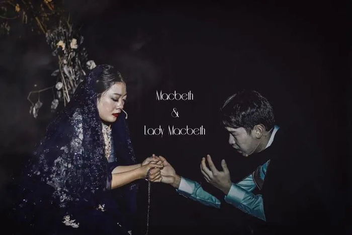 P4.哲学学子在哲学舞台剧《汝,莎士比亚》中扮演麦克白和夫人。