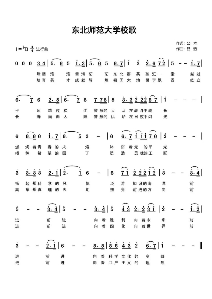 作为中国共产党历史上创办的第一所师范大学和在东北地区建立的第一所综合性大学,东北师范大学的办学历史始终与中国革命发展和建设历程紧紧相连,传承自延安的红色基因更成为一代代东师人最鲜亮的精神底色。由公木先生作词、吕远先生作曲的《东北师范大学校歌》,以振奋人心的歌词和澎湃激昂的旋律表现了建校初期的前辈们在炮火硝烟中辗转迁移、讲授新知、传播文明的光辉历史,以及无数东师人在党的带领下培育英才、奉献社会的崇高品德。一代又一代的东师人在校歌的传唱中不断弘扬“强师报国 求实创造”的东师精神,厚植爱党爱国、爱校荣校的赤子情怀。