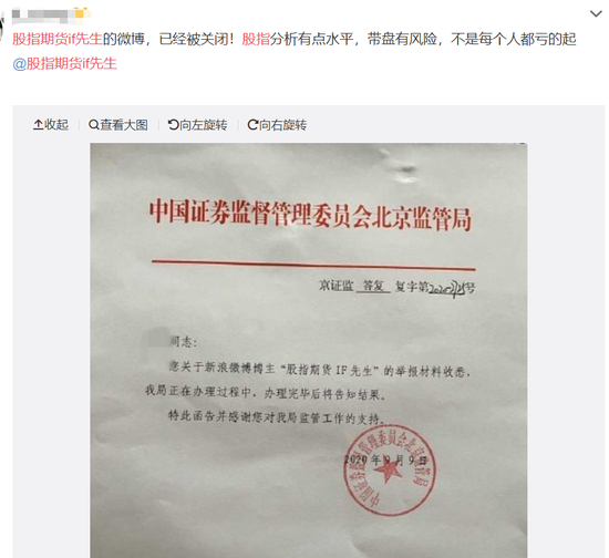 除了上述两个账号外,今日同样被证监会点名的微博“小红帽爱股票”粉丝数量达到168万,“掐头去尾吃波段孙仁友”与“周思CIO”“空空道人”粉丝数分别为23万、70万、91万。余下被点名的“山城糊涂大王”则已查不到同名账号,疑似注销。
