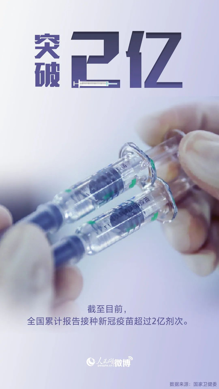 ☞ 全国累计报告接种新冠疫苗超过2亿剂次