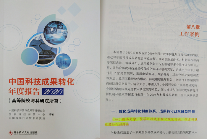 该成果在《中国科技成果转化2020年度报告(高等院校与科研院所篇)》中被作为典型案例进行了介绍。
