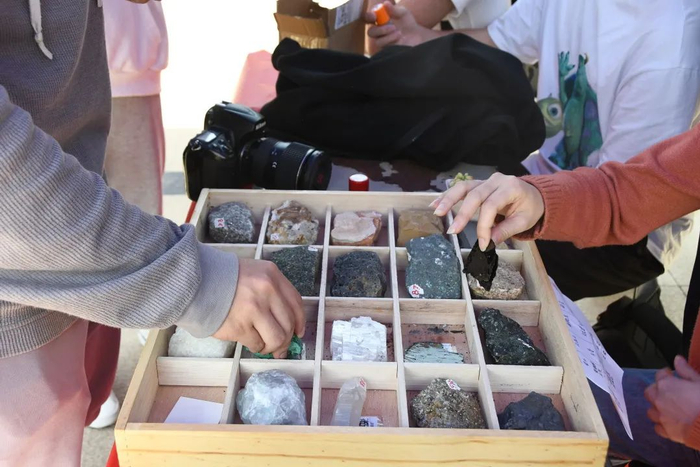 在世界地球日到来之际,为进一步宣传地球知识,呼吁更多学生关注地球,保护环境,本次地球科学文化节线下活动现场共设置了六个版块,分别是点亮中国、地球重建、岩石科普、勾勒地球、垃圾分类和绿植领养。岩石科普活动让同学们亲身体验岩矿观察,学习到各类岩石的小知识;地球重建活动警醒人们爱护家园、保护环境;垃圾分类活动呼吁大家在生活中做好垃圾分类......各具特色的活动引导师生在富有趣味的游戏中学习地学知识,感受地学之美,增强环保意识,关注地球生态。