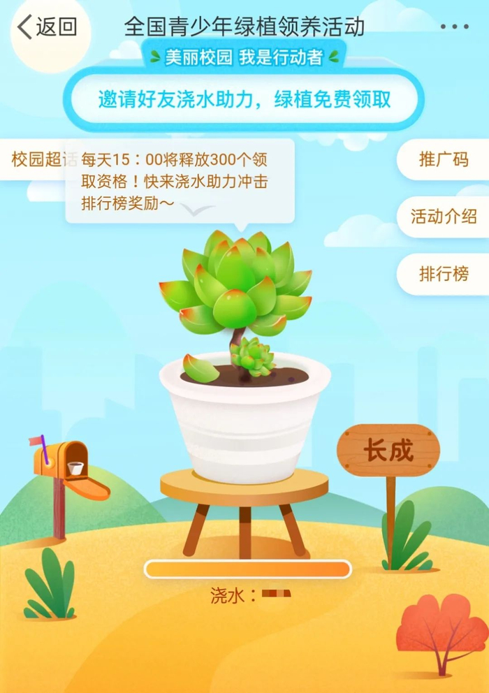 邀请至少一位好友浇水,即可获得一盆多肉;