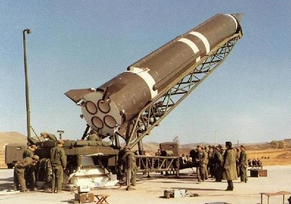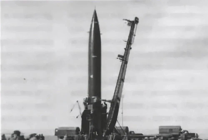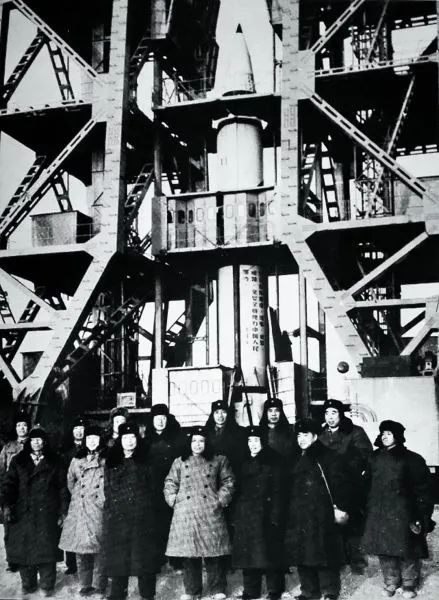 聂荣臻与钱学森、李福泽、任新民等在导弹发射架前合影