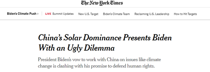 常年在国际舆论场为美国的国家利益充当喉舌的美国《纽约时报》,近日在一篇报道中就宣称中国的大型太阳能企业正将其生产线转移到新疆,帮助中国政府在新疆“强迫”少数民族劳动,并在新疆外的工厂中也在接收“被强迫劳动”的维吾尔人。