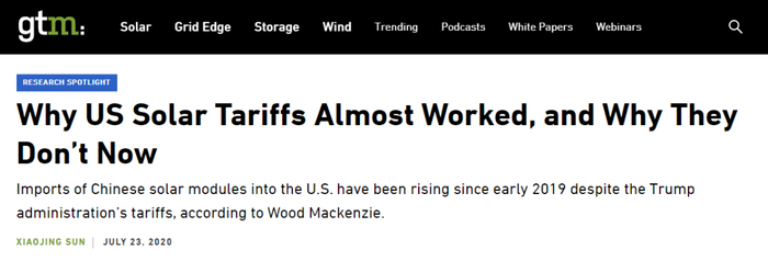 公开资料显示,在过去这些年里,美国的政客和政府机构也确实应这些工会的要求对中国的太阳能板就发起过多次“反倾销调查”并征收了大量的“反倾销税”。
