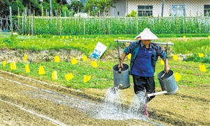 本报4月22日讯(记者马誉嘉)“这些诱虫板保护着我的蔬菜健康、绿色、环保地走进了菜市场。”近日,海口市美兰区加乐田常年蔬菜基地的菜农黄加智在菜农微信群里喜悦而自豪地分享道。本月初,黄加智用诱虫板在菜地“排兵布阵”后,以前要打3次农药,现在只需打1次,不但省工省钱,而且对人、对菜、对环境更加绿色健康。