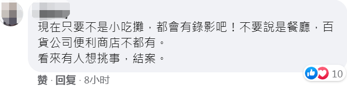 对于海底捞的再次声明,有岛内网友也觉得设监视器正常,“现在只要不是小吃摊,都会有录像吧!不要说是餐厅,百货公司便利商店不都有。看来有人想挑事,结案。”