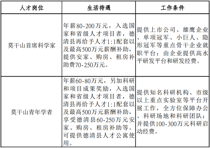 注:所有引进德清的高层次人才均可享受德清人才政策。