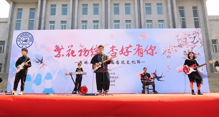 开幕式上,吉林大学吉速电动方程式车队的车技表演点燃了观众们的热情;南岭校区“小板房”乐队的一首《春风十里》陪伴大家徜徉花海;吉林大学大学生艺术团表演舞蹈《书简》,舞者在风中翩翩起舞仿佛一朵朵绚丽绽放的杏花;生物与农业工程学院“花开春意闹 汉红彩旗飘”汉文化展演带领同学们穿越时空去感受传统文化的积淀与魅力。