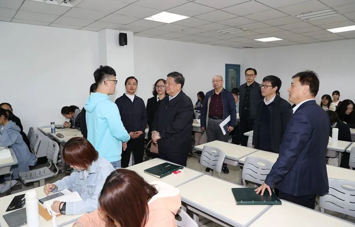 姜治莹来到逸夫教学楼118教室,与文学院2020级50多名本科生一同聆听了马克思主义学院副教授、史学博士、硕士生导师张岩讲授的中国近代史纲要中篇课程《翻天覆地的三十年—从五四运动到新中国成立》。听课过程中,姜治莹凝神专注,认真听讲并不时记录,课后与授课教师、马克思主义学院负责人、课堂学生亲切交流,对教师们的教学态度、教学效果等给予肯定,并对教师课堂教学和马克思主义学院如何进一步提升思政课教学水平提出意见和建议。姜治莹指出,“立德树人、为党育人、为国育才”,这是习近平总书记对广大教师提出的殷切期望。思政课是落实立德树人根本任务的关键课程,为党育人、为国育才,思政课作用不可替代,思政课教师队伍责任重大。他希望全体思政课教师潜心教学、深入研究,积极探索新时代教育教学方法,不断提升教书育人本领,增强课程的吸引力、感染力,增进学生的理论认同、政治认同、情感认同,当好大学生健康成长的引路人。
