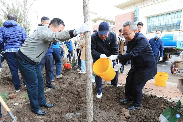 长春市规划和自然资源局、生态环境局、城乡建设委员会、住房保障和房屋管理局、城市管理局、林业和园林局等长春市有关单位负责同志,全体校领导和部分机关部门负责同志,青年师生代表等百余人参加了植树活动。