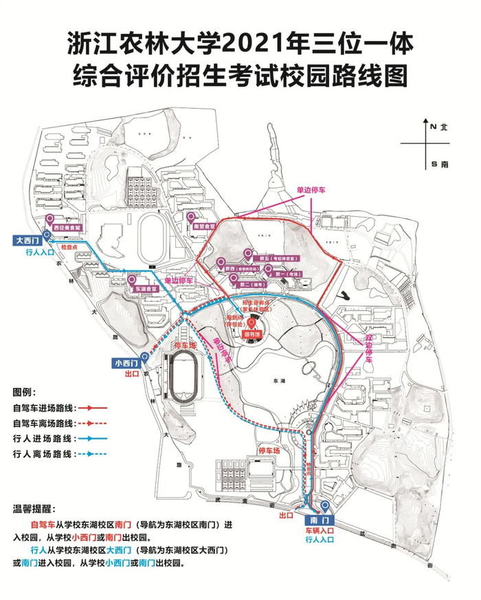 3.自驾车前来的考生及家长(陪同人员)请导航至浙江农林大学南门。如走高速,可在G56杭徽高速临安出口下高速。
