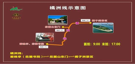 岳麓山爱晚亭(岳麓书院)⇌岳麓山东门(停车场)⇌橘子洲景区
