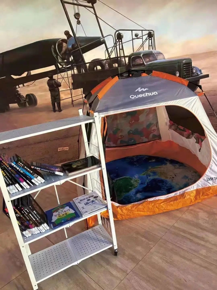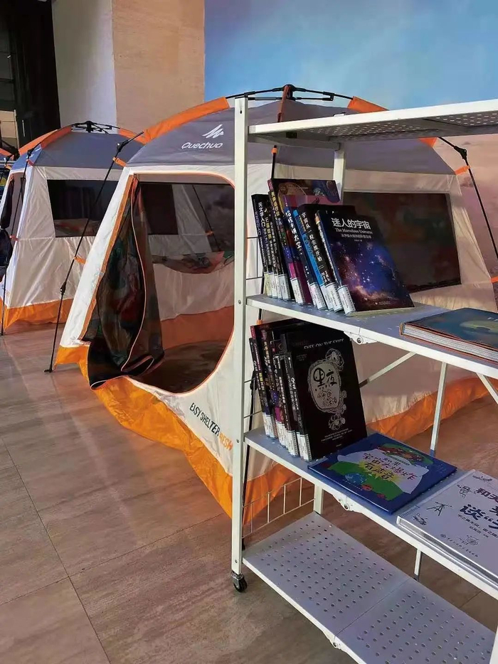 在帐篷书房里,来自闵行的一家三口坐在帐篷一起津津有味地阅读《太空狗麦克斯去月球》,书里模拟了真实的太空探险,让读者在幻想旅行中获取天文宇宙知识。在科普集市里,养乐多火箭、创意飞行器、航天小卫星受到了小朋友们的热烈追捧。来自交大附小的秦子腾小朋友是个小小航天迷,他参与了当天几乎所有的活动,获得了钱学森图书馆全新推出的盲袋与10周年纪念徽章,也离他的航天员梦想更近了一步。