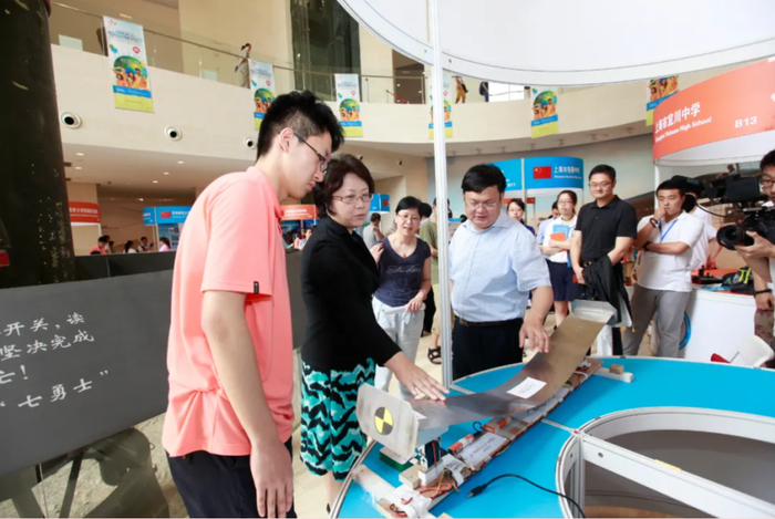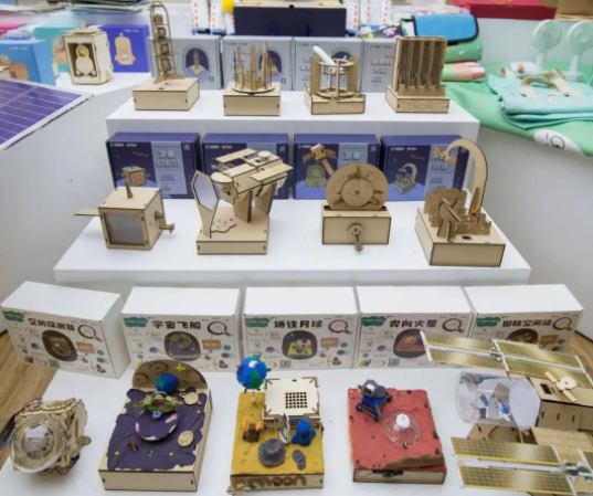本次科学节一共设置了多个主题活动区域:在星空VR体验区,观众可以佩戴VR眼镜观看火箭发射、登陆月球、飞越太阳系;在航天实物展中,观众有机会近距离观察天问一号火星环绕器、鹊桥中级卫星、卫星太空巴士等航天器模型,亲手操作互动火箭发射场与智能太空种植箱;
