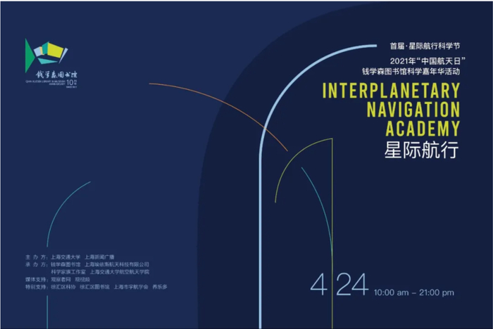 4月24日,为了迎接第六个中国航天日,由上海交通大学、上海新闻广播主办,钱学森图书馆、上海埃依斯航天科技有限公司、科学家族、上海交通大学航空航天学院联合承办,徐汇区图书馆、徐汇科协、上海市宇航学会、观察者网、观传媒特别支持的“首届星际航行科学节”在钱学森图书馆举行,三十余场活动遍布场馆各个角落,吸引线上线下超过20000人次观众共同参与,领略星际航行的魅力。