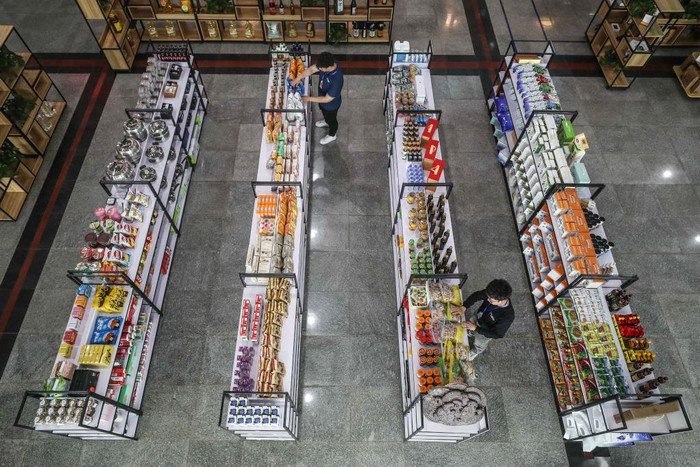 2020年6月2日,辽宁省营口市老边区社交电商产业园里一家公司的员工在整理货品。新华社记者 潘昱龙摄