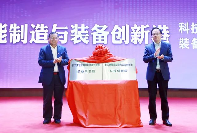 付梦印与江宁区委常委、常务副区长樊向前为长三角智能制造与装备创新港科技创新园、装备研发园揭牌。