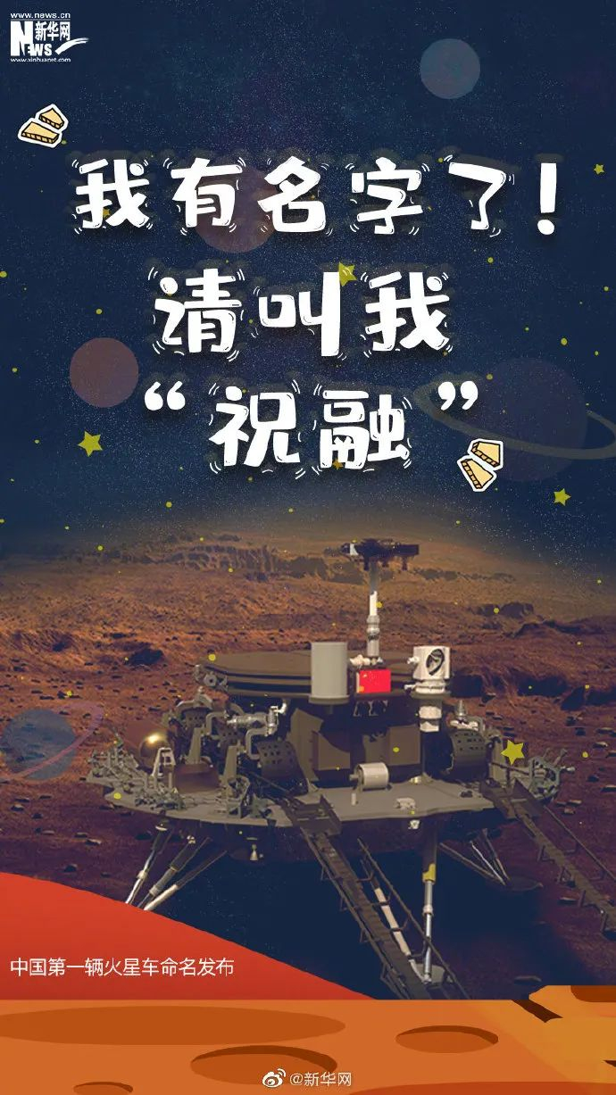 开幕式上,我国首辆火星车名称揭晓,经全球征名、专家评审、网络投票等层层遴选,最终“祝融号”脱颖而出。祝融在中国传统文化中被尊为最早的火神,象征着我们的祖先用火照耀大地,带来光明。首辆火星车命名为祝融,寓意点燃我国星际探测的火种,指引人类对浩瀚星空、宇宙未知的接续探索和自我超越。
