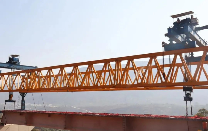 昆倘高速公路黑箐大桥首片T梁成功架设