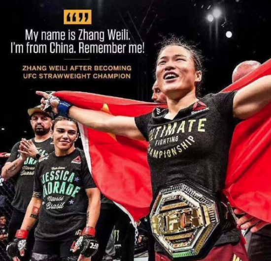 当张伟丽第一次扛起金腰带,对着镜头用英文大声喊出:“我的名字叫张伟丽,记住我!”