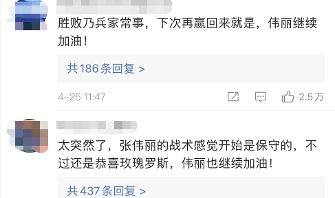 站在巅峰600天后,张伟丽输掉了比赛,但正如她自己此前所说,“胜败乃兵家常事,但我们做任何事情的时候都要抱着必胜决心去做。”