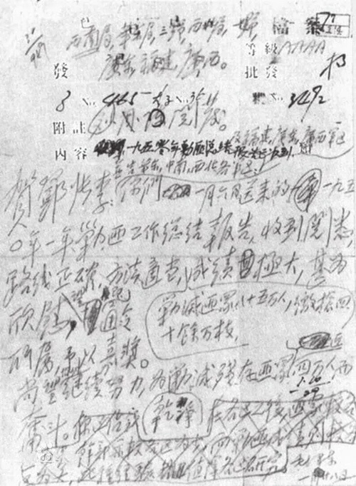 毛泽东关于嘉奖西南剿匪部队的电报手稿