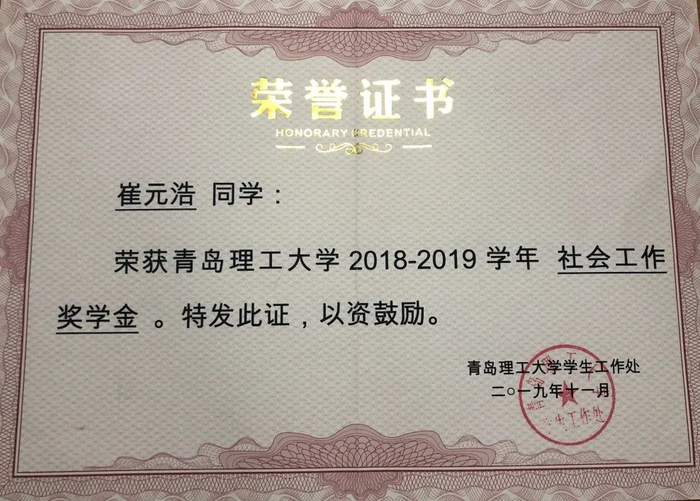 崔元浩,大学期间通过了四六级,获得全国大学生数学建模竞赛山东省一等奖,平时爱好中国古典哲学、古琴等优秀传统文化,以优异的成绩进入大连理工大学。
