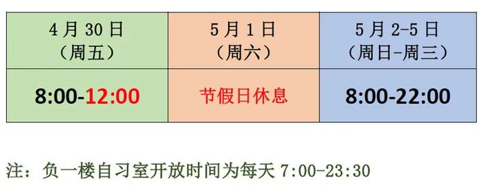 “五一”节期间服务时间表