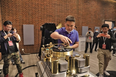 昨日,音乐产业园内的部分展厅已开始布展,对于颜值控观众来说,在这里能够欣赏到高颜值的专业音响。记者看到,一款名为“喇叭花”的音响已经露出真容,其外观呈喇叭状,一大一小两个音响,斜向排列,红色“喇叭花”引人注目。除了高颜值,对于专业观众来说,更注重音响的品质。记者了解到,本次展会的参展商包括近百家国内外知名音响厂家、代理商,展示近1000个品牌的发烧音响及周边产品。
